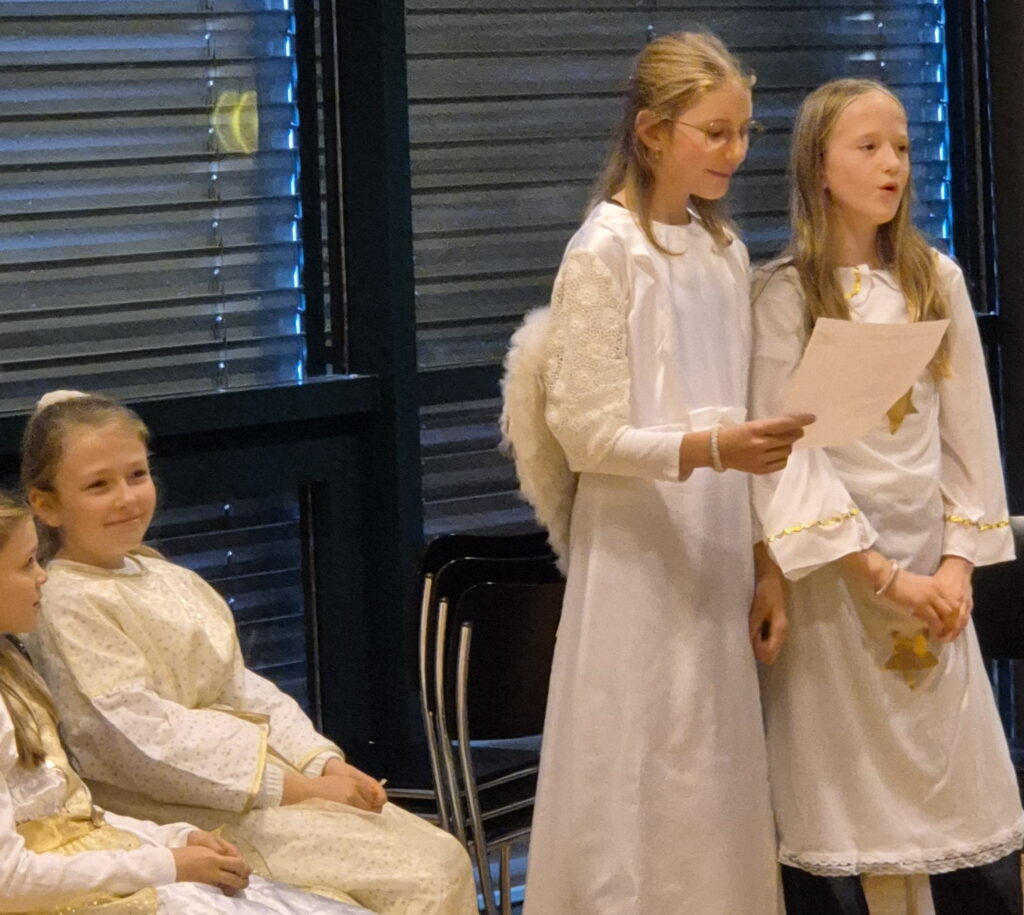 Natürlich durften die traditionellen Engeli nicht fehlen. Die beiden Engeli -Gruppen: Eileen und Malani sowie Meret und Dalia bereicherten die Feier mit ihrem Auftritt. Dafür bekamen sie einen grossen Applaus.