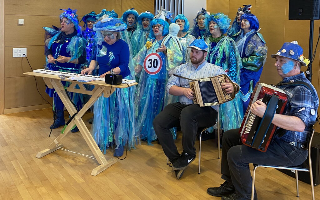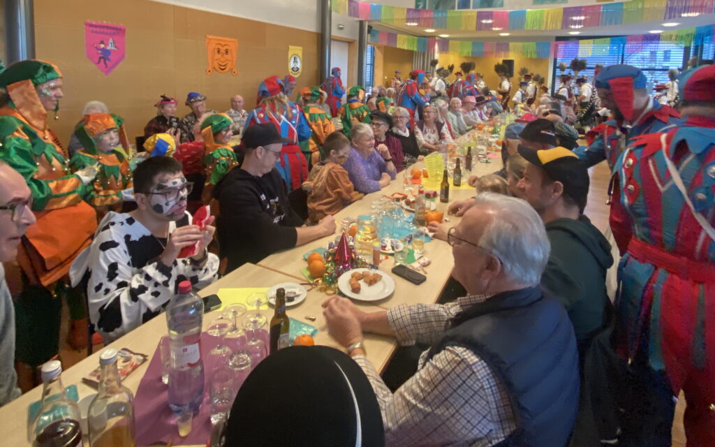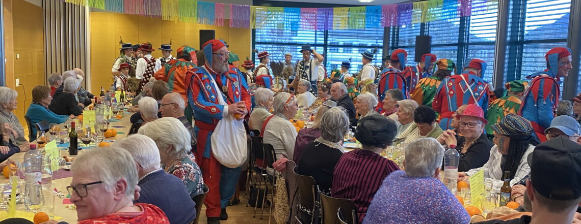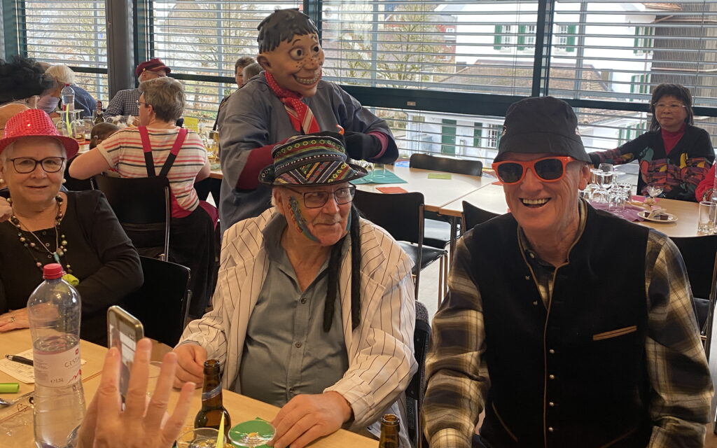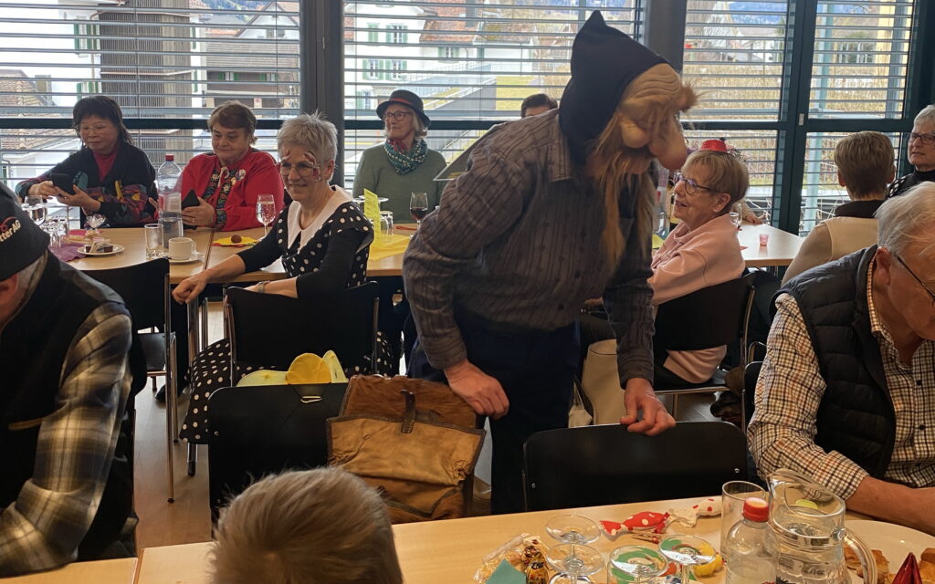 Die fröhlichen Gespräche, das gemeinsame Lachen und die fantasievollen Masken sorgten für viele heitere Momente. Besonders originell war eine Gruppe Wanderer mit ihren gefüllten Rucksäcken, die im Saal eine geeignete Wanderroute suchten. Dabei erhielten sie tatkräftige Unterstützung von den Anwesenden, welche für zahlreiche Schmunzler sorgten.