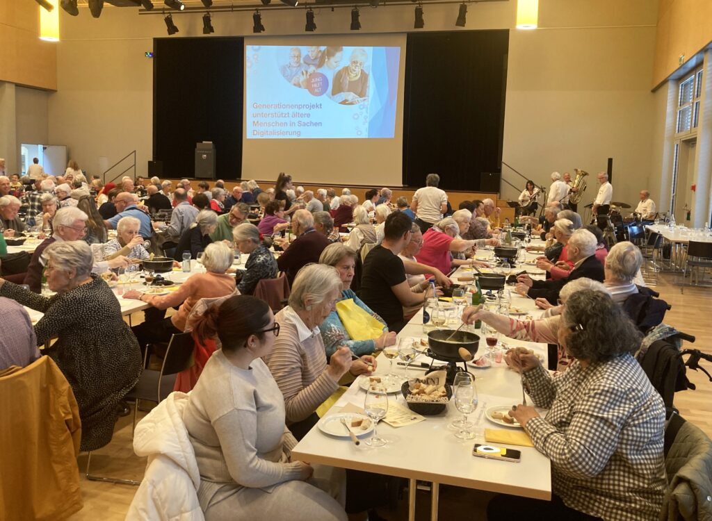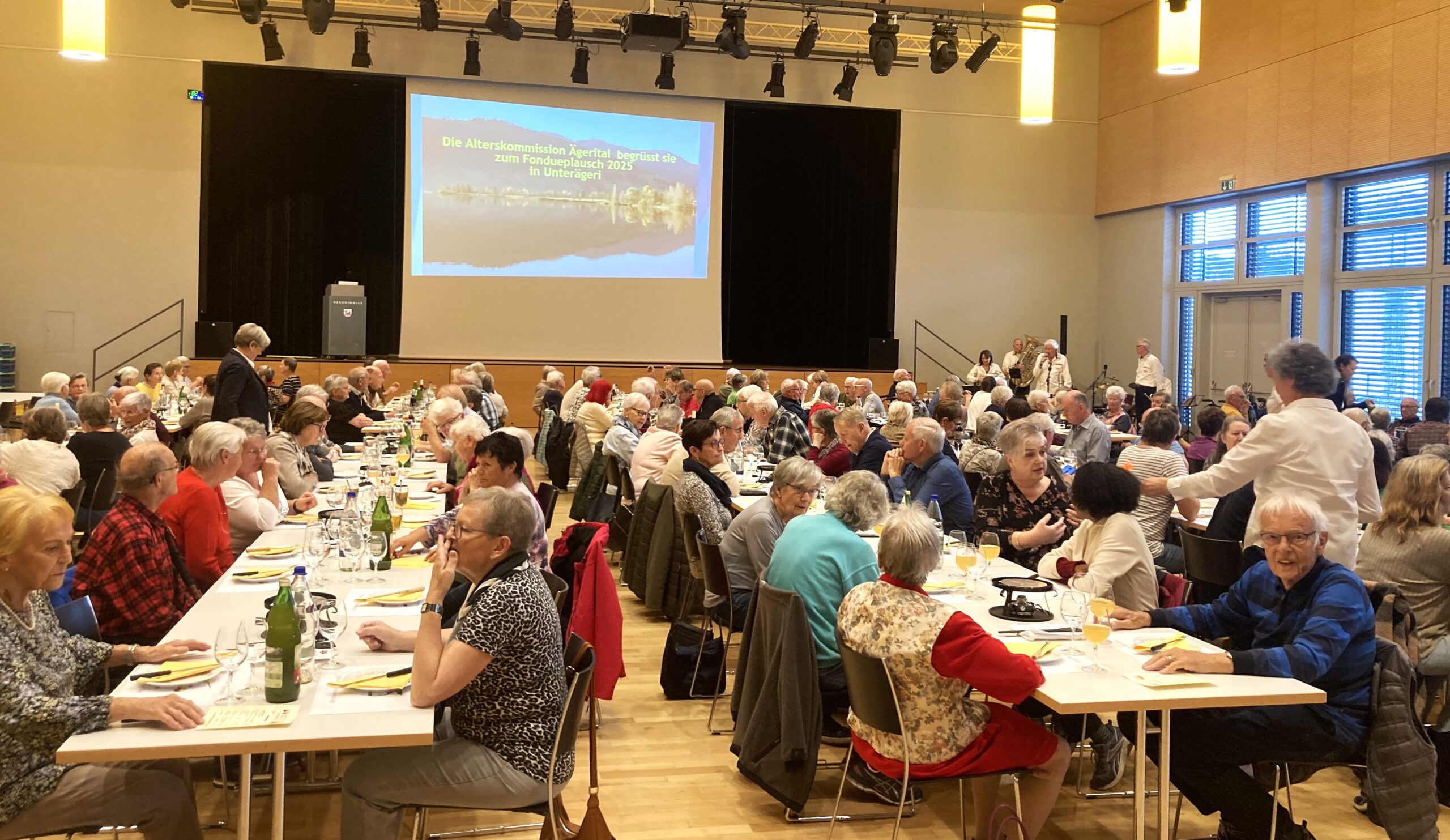 Ein Klassiker im November – Fondue und Musik – mit erneuter Rekordteilnahme. 195 Personen, davon 172 Gäste, sowie Musikanten, Helferinnen und Helfer verbrachten einen gemütlichen Nachmittag in der Ägerihalle.