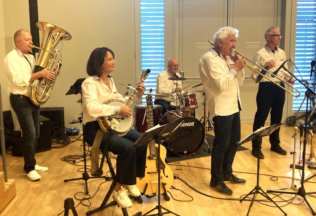 Heute unterhielt uns Swanee River Band (1 Dame, 4 Herren). Sie waren es, die zum Start wortwörtlich geblasen haben, sie waren es, welche für das Schlussbukett sorgten. Eine beliebte Band – und nicht zum ersten Mal am Fondueplausch.